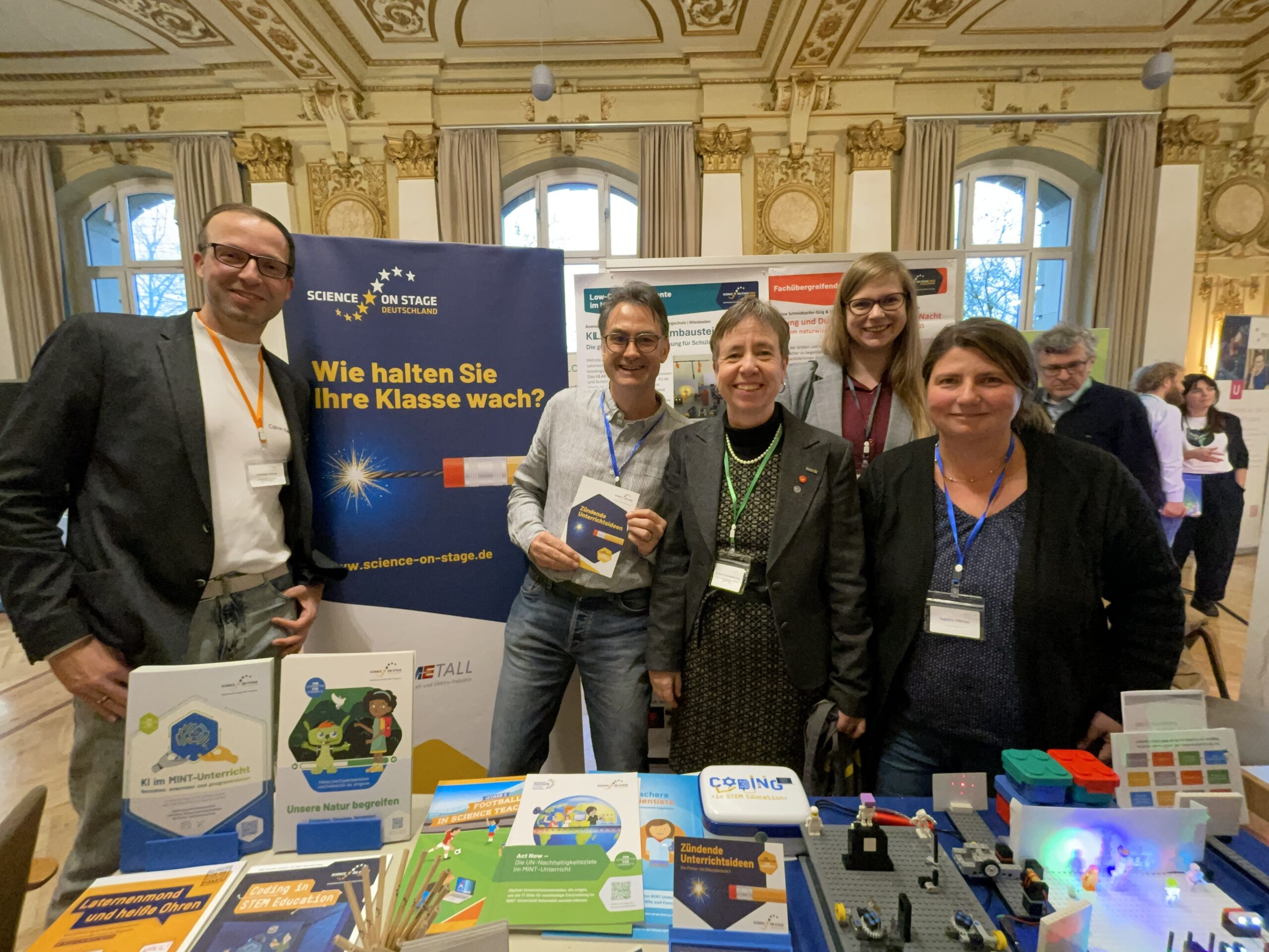 Am Freitag konnte man sich beim Bildungsmarkt über die unterschiedlichsten Angebote aus dem MINT-Bereich informieren. Hier waren die MINT-Koordinatorinnen, die gleichzeitig Science on Stage Botschafterinnen sind, am Science on Stage Stand präsent.